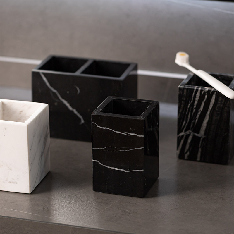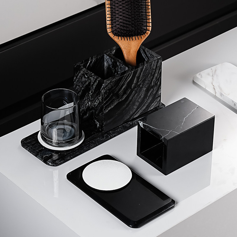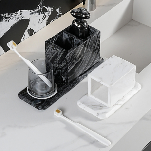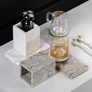 高档大理石收纳盒洗漱台棉签化妆棉美妆刷笔筒梳子牙具置物收纳筒
