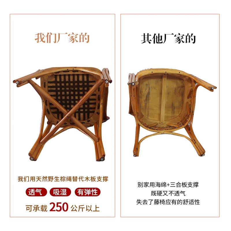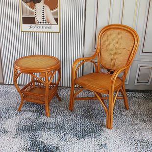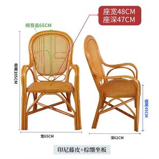 印尼藤编休闲椅真藤扶手椅家用阳台靠背椅新中式 茶桌椅麻将老人椅