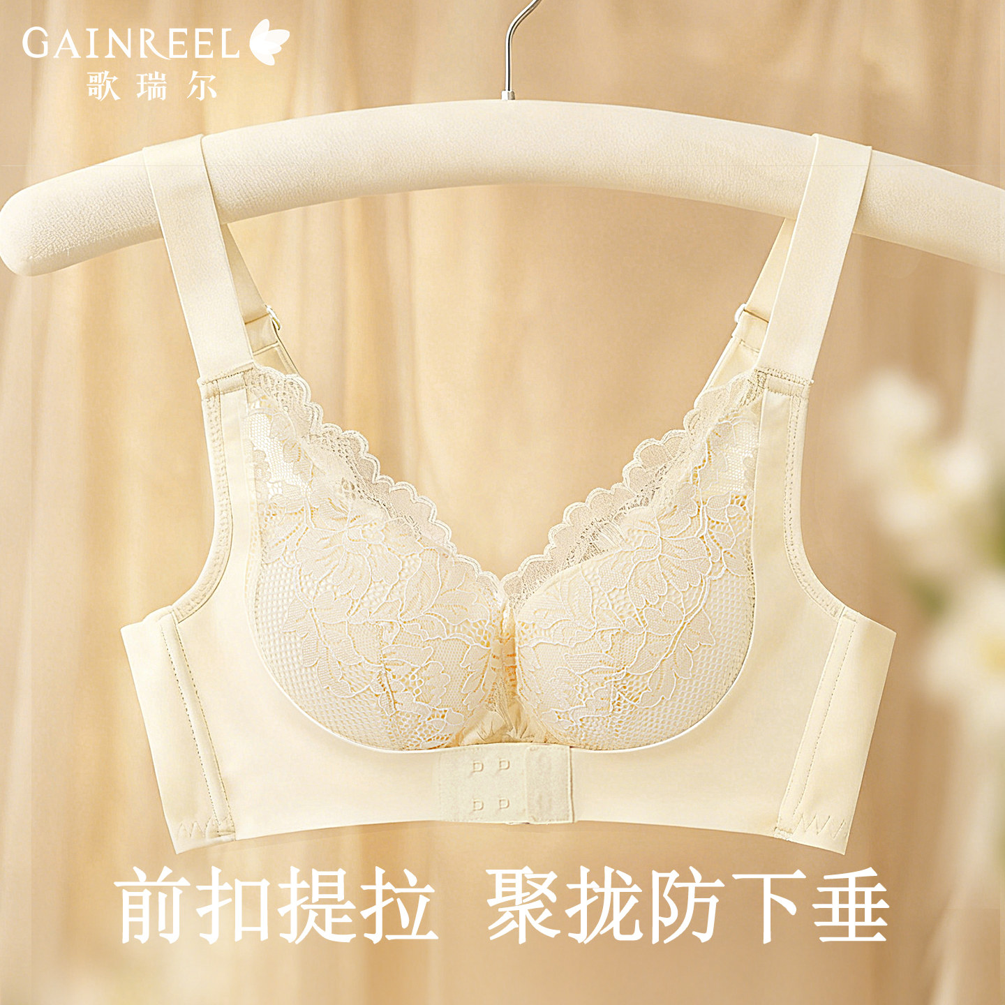 调整型前扣文胸歌瑞尔无痕美背内衣女聚拢防下垂收副乳无钢圈胸罩
