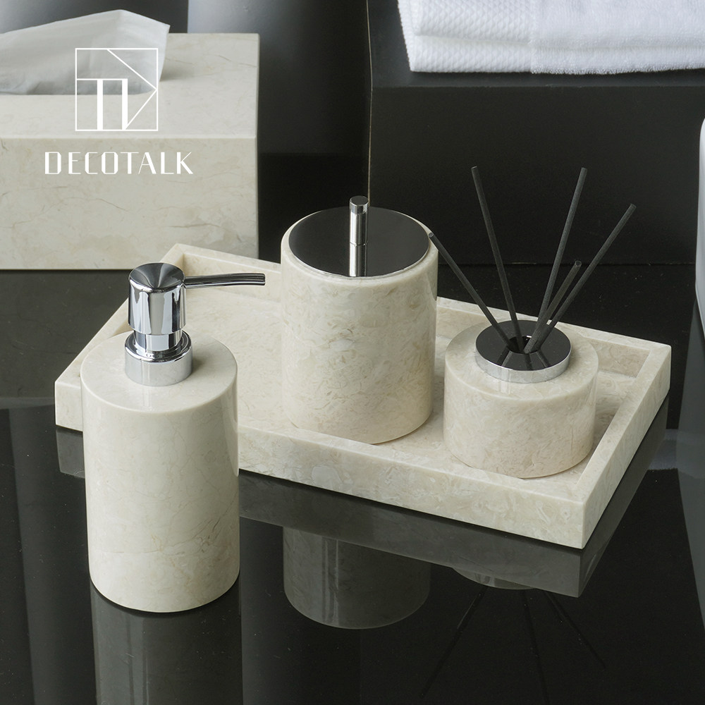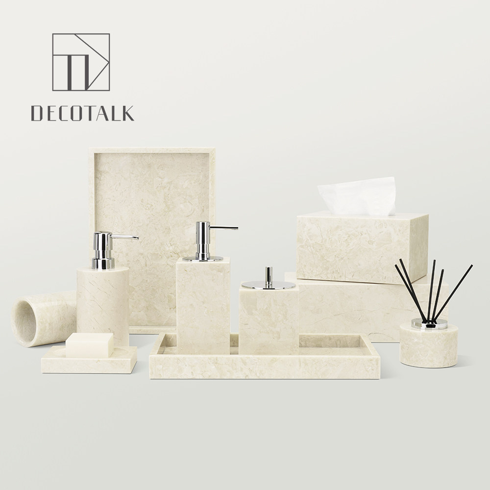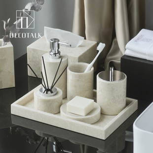 DecoTalk侘寂风天然大理石卫浴套件简约浴室香薰纸巾盒托盘摆件