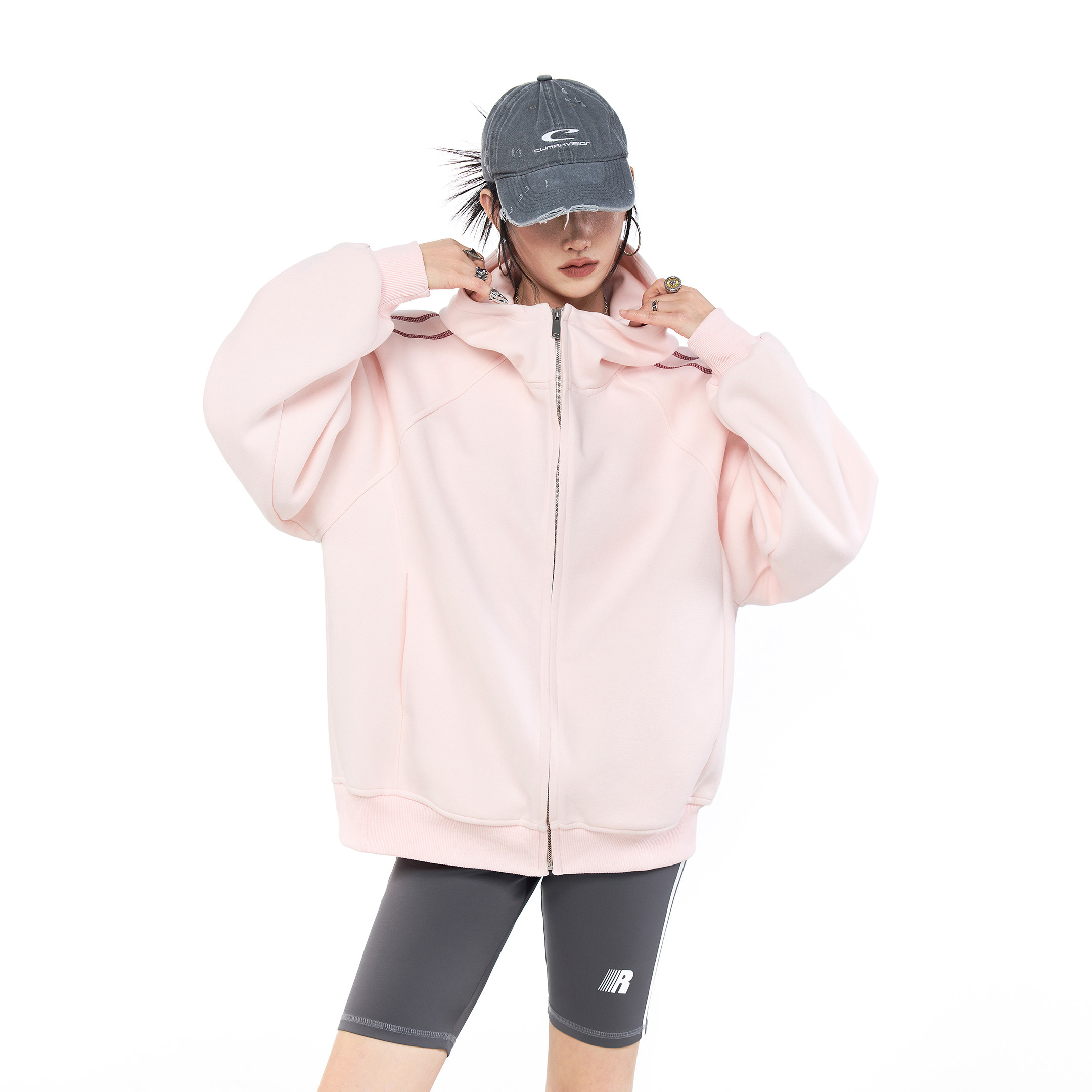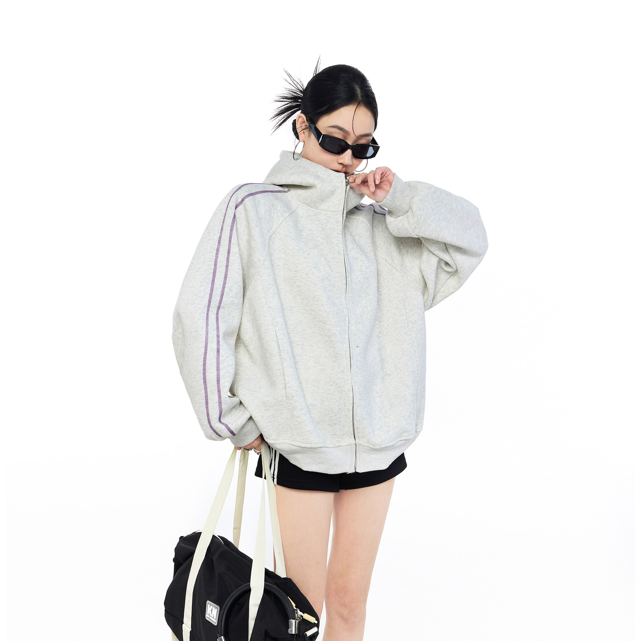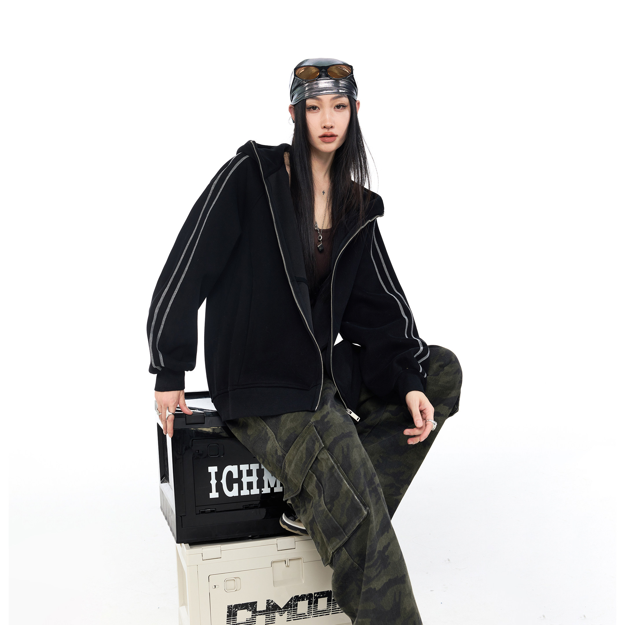 流行宽松运动开衫 ICHMODE 新款 哈苏线连帽卫衣外套女春季 上衣 美式
