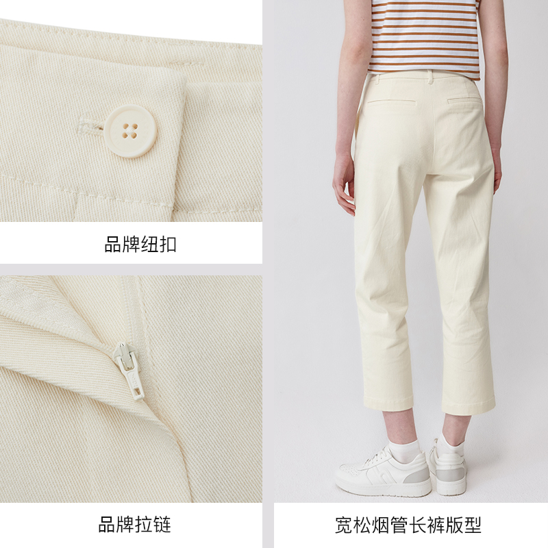 直筒裤 子通勤棉质长裤 女 女士休闲米黄色裤 Hazzys哈吉斯奥莱春新款