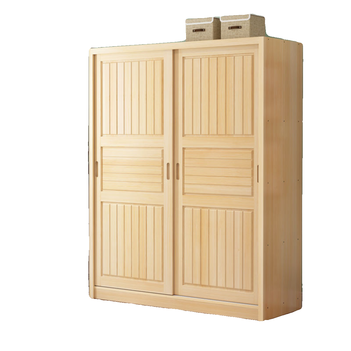 实木松木收纳柜顶柜简约推拉卧室储物柜儿童衣柜两门组装 衣橱定制