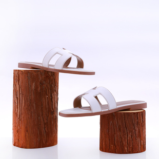 一字百搭沙滩旅游h凉鞋 网红真皮平底h拖鞋 韩版 外穿新款 子 女夏时尚
