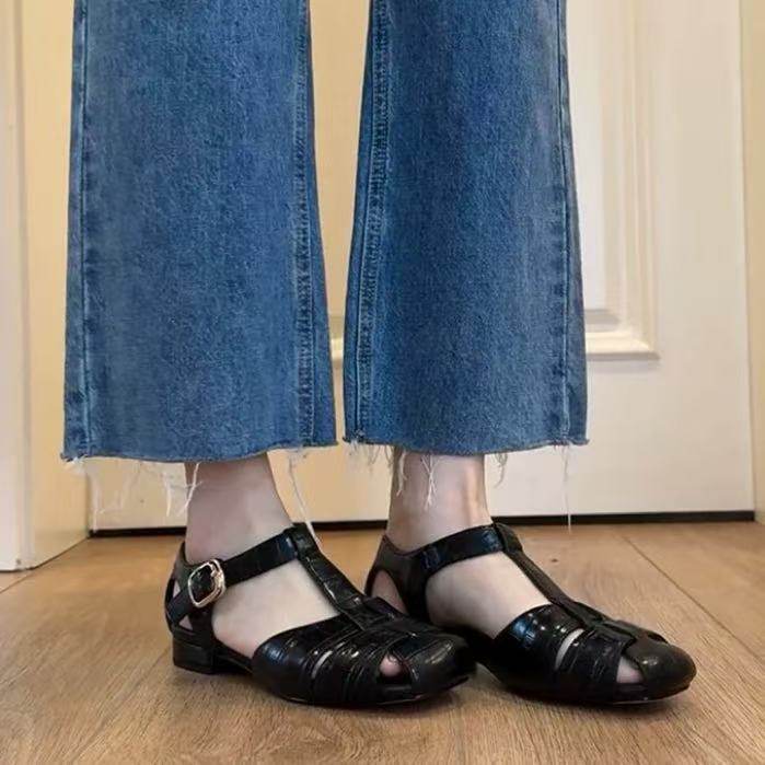 3CM跟高2025春夏编织镂空平头凉拖鞋 A868不退不换