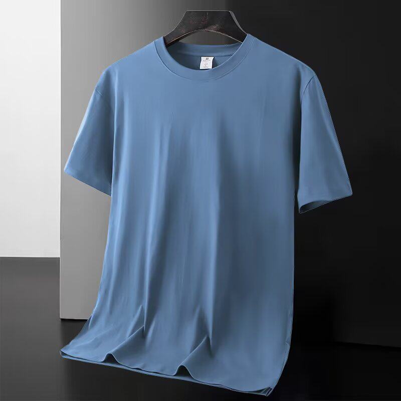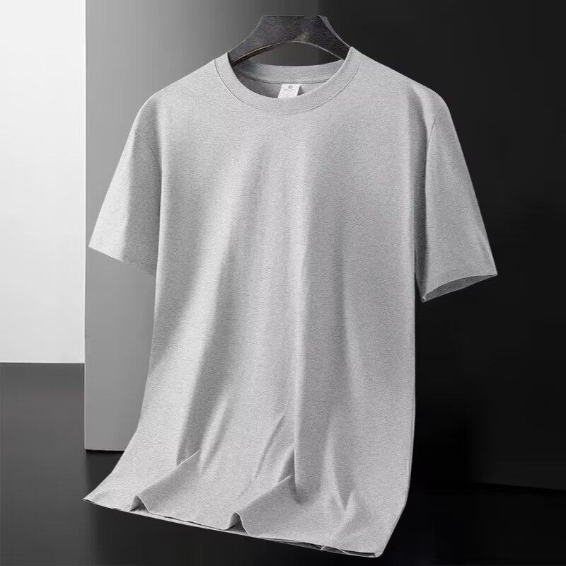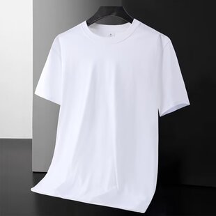 新款 t恤圆领大码 冰丝速干男装 短袖 百搭上衣服黑色纯色T恤 男式 夏季