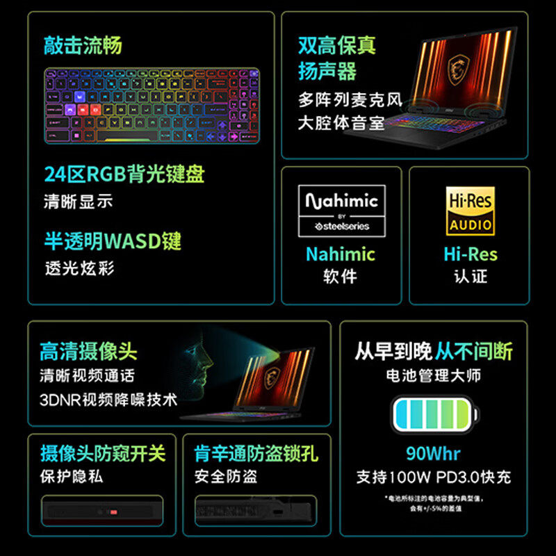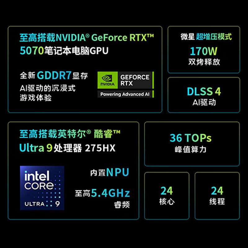 HX满血RTX5070独显16寸2.5K MSI 全新酷睿Ultra9 2025 240Hz高刷高色域学生笔记本电脑 微星神影16