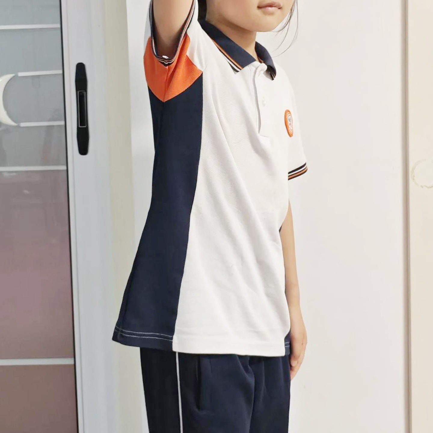 学生校服白色上衣短袖 橙色拼接中小学生舒适运动休闲夏翻领pole衫