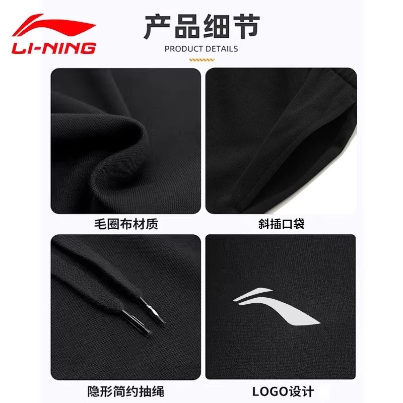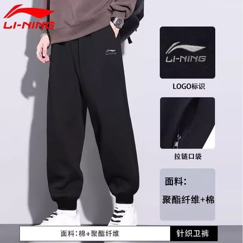新款 秋冬季 加绒加厚保暖大码 卫裤 子 李宁运动裤 男宽松休闲长裤 男款