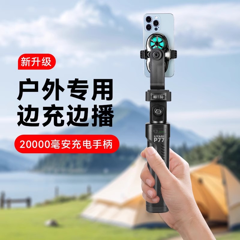 适用iPhone苹果17Promax内置20000毫安充电宝手持支架2万毫安手机散热器支架户外走播直播拍摄拍视频三脚架