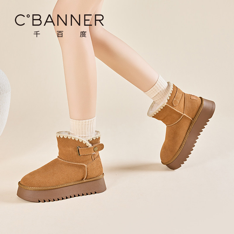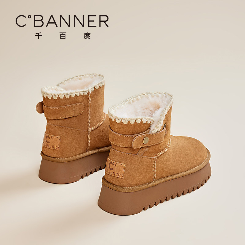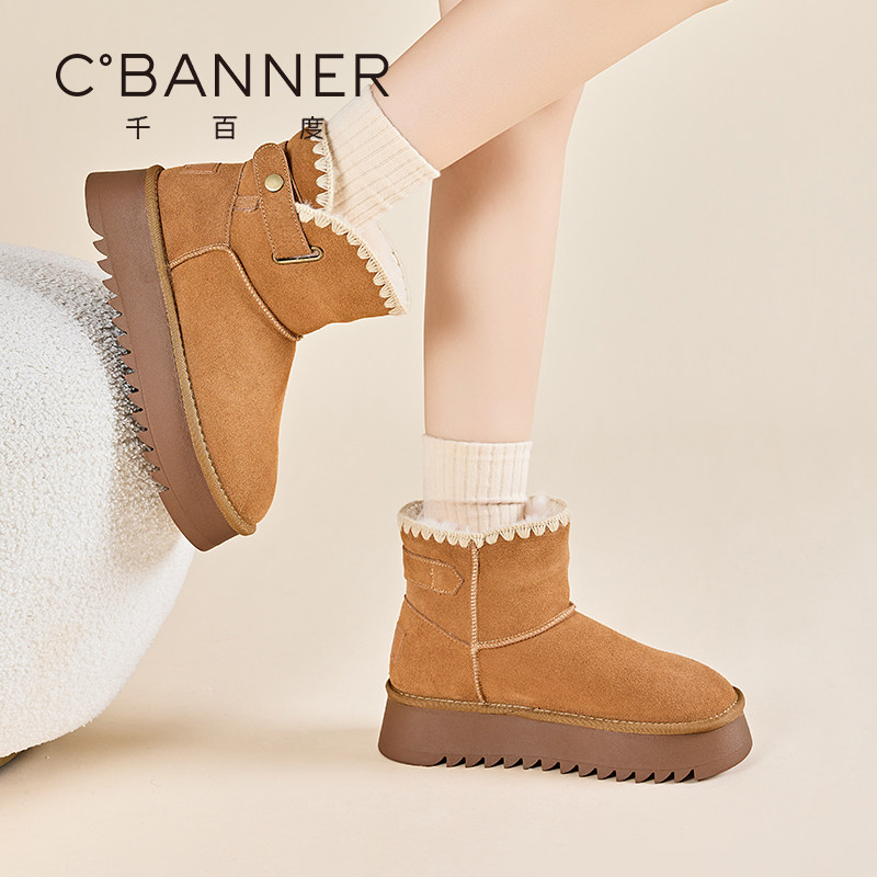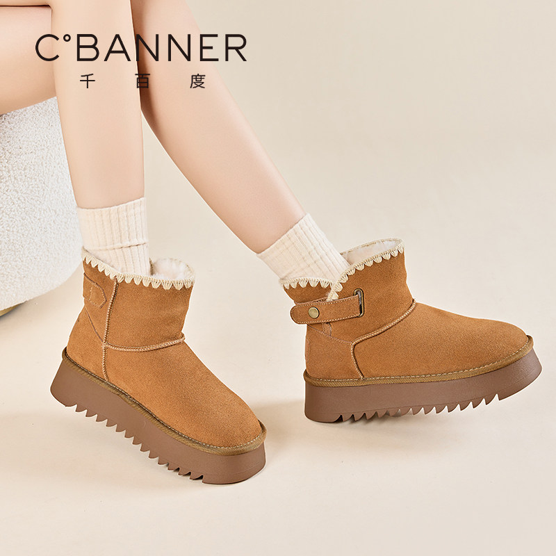 雪地靴加厚棉鞋 骆驼女鞋 加绒保暖时尚 新款 休闲短靴女 2025冬季