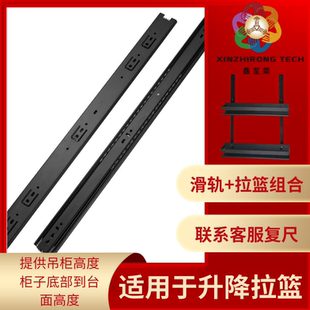 加厚53宽重型滑轨工业承重导轨带锁岛台房车柜抽屉三节轨滑道轨道