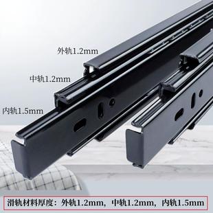 加厚不锈钢抽屉轨道三节轨缓冲阻尼静音导轨二节轨橱柜键盘托滑轨