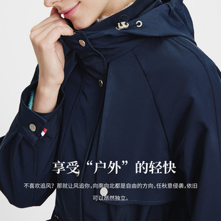 Navigare意大利小帆船防风外套女士中长款 连帽大衣 户外风衣时尚