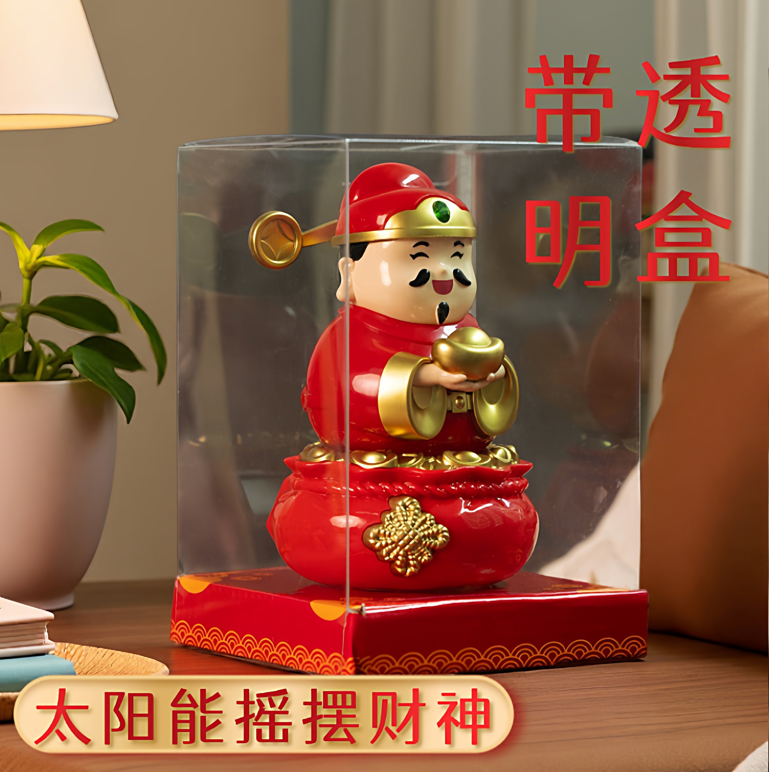 财神爷太阳能自动摇摆办公室家用汽车车载摆件招财点头小财神礼物
