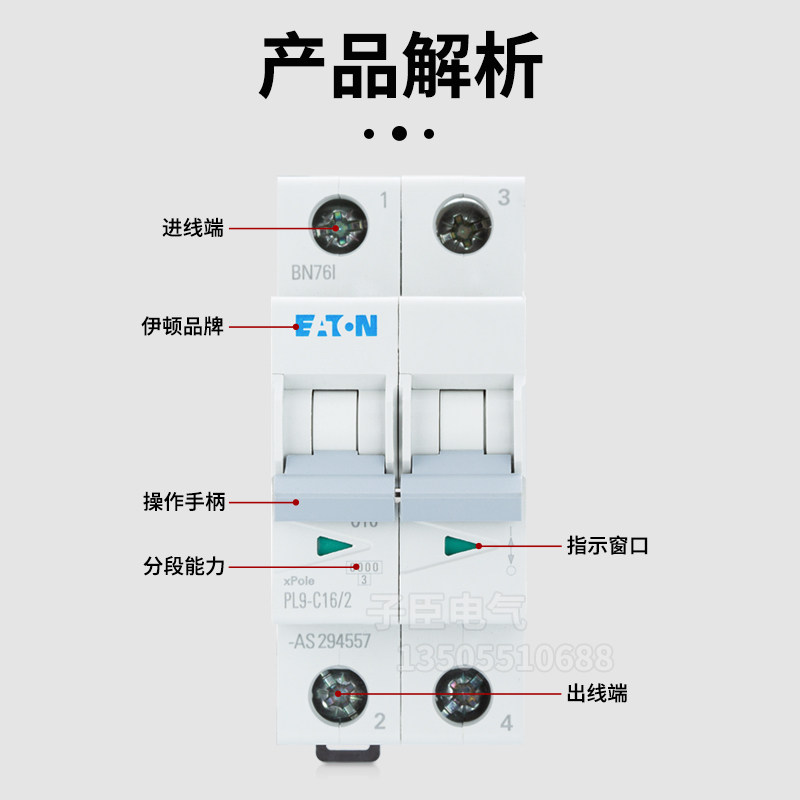 EATON伊顿穆勒空气开关PL9空开断路器家用1P2P3P4P C16A20A32A63a