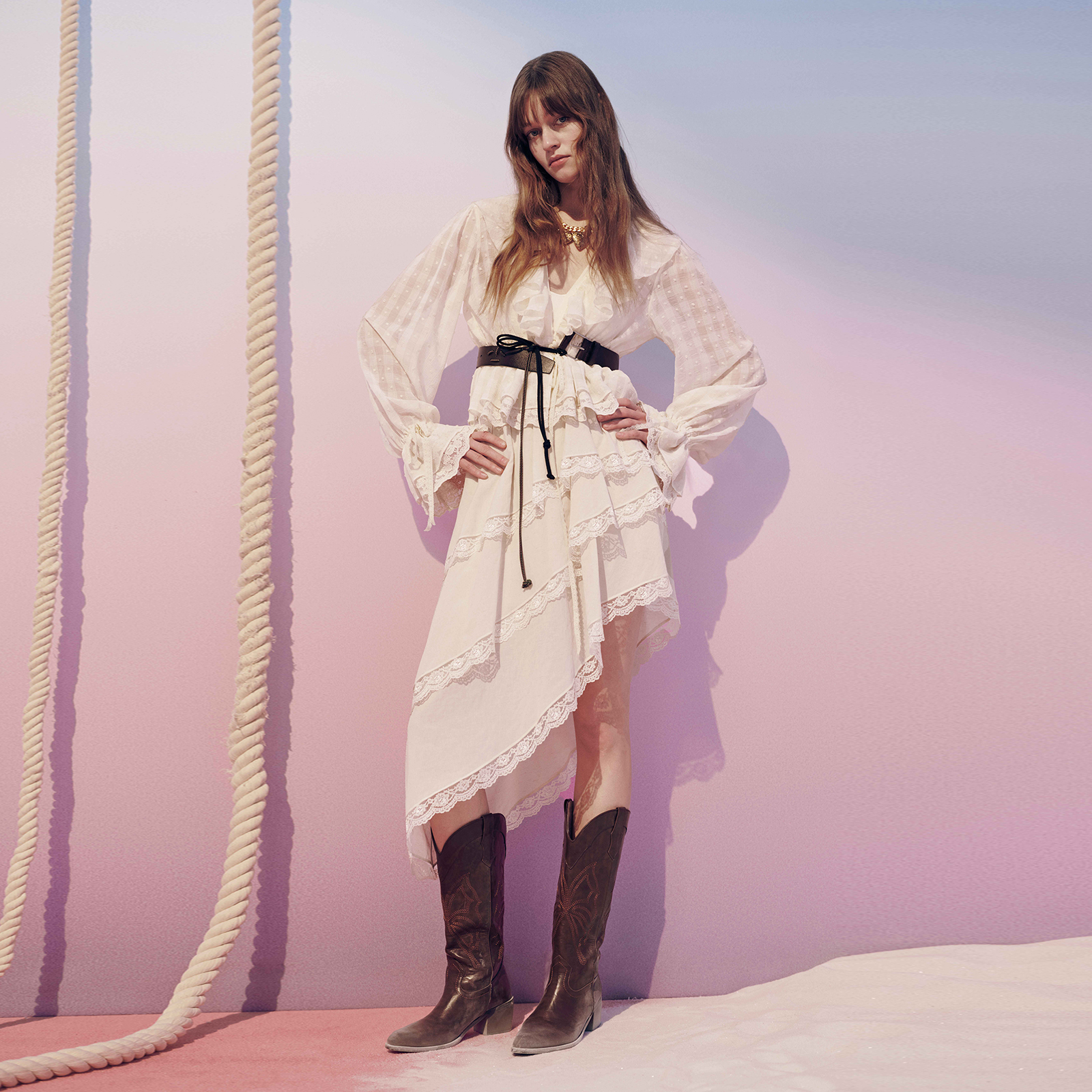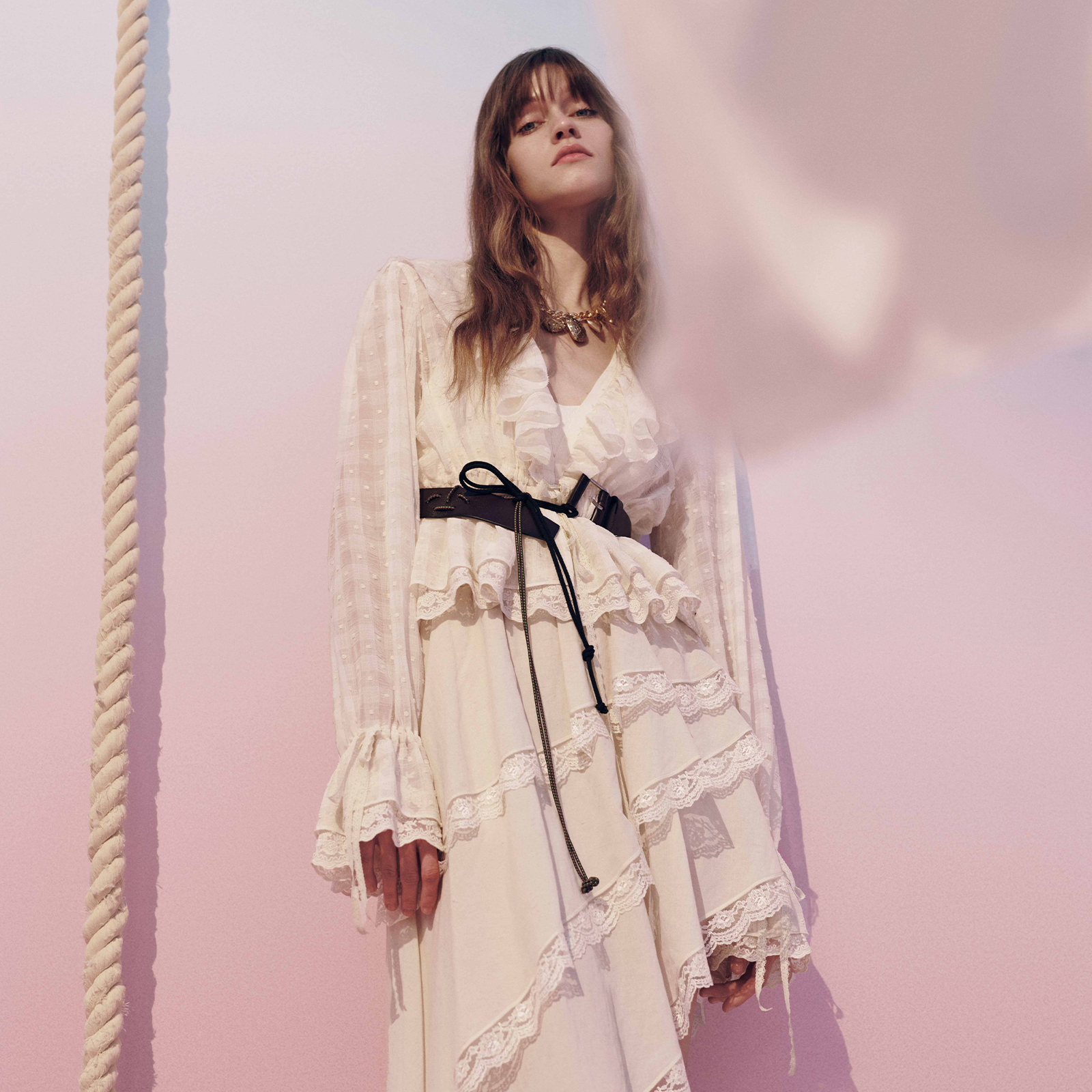 大翻领宫廷风韩系温婉上衣女 2025新款 wana try肌理感拼接蕾丝衬衫