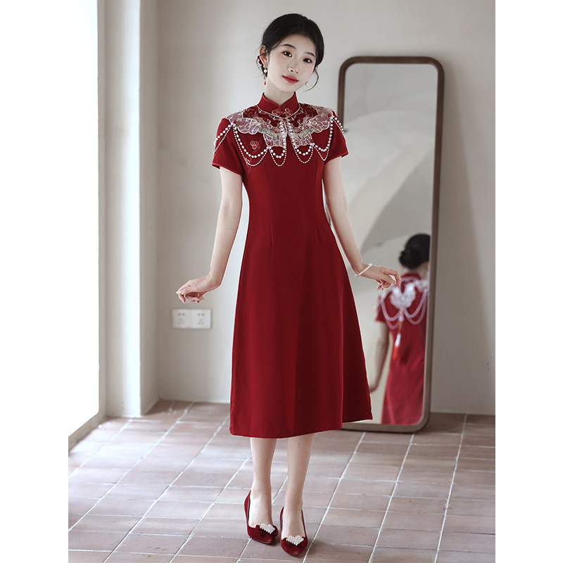 红色云肩旗袍敬酒服新娘结婚高级绝美新中式 订婚礼服连衣裙小个子