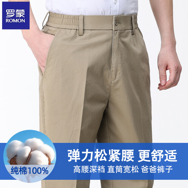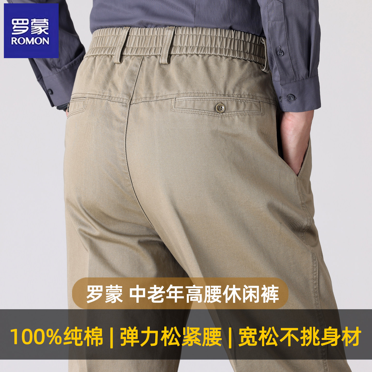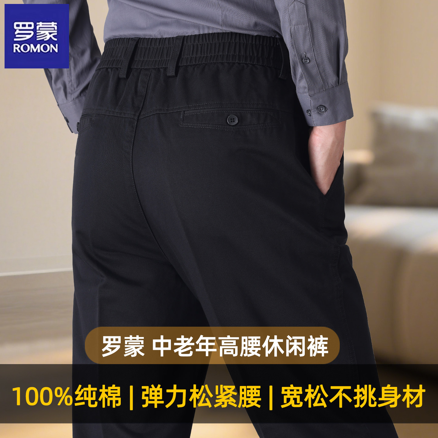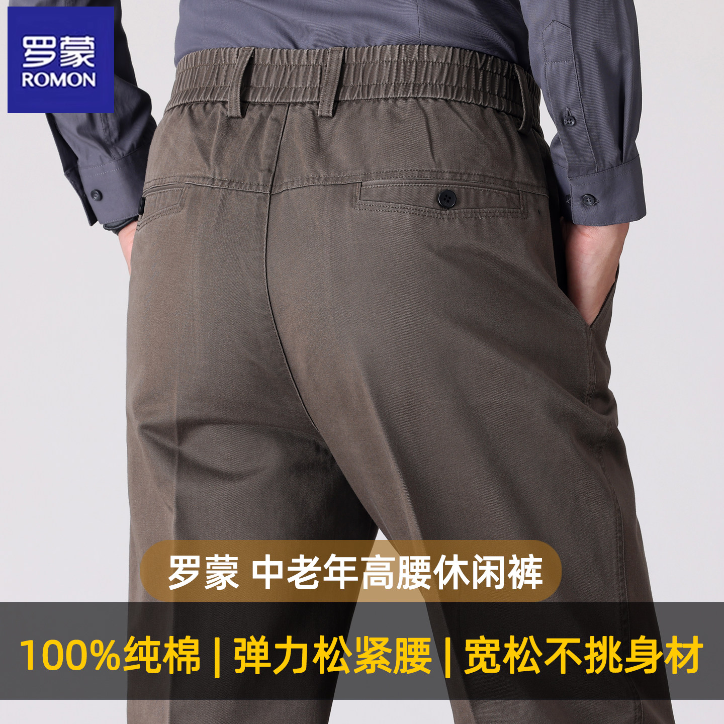 老人松紧腰裤 中老年纯棉男裤 男士 爸爸裤 罗蒙休闲裤 长裤 男秋冬厚款
