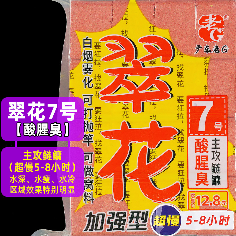 老G翠花7号酸腥臭方块饵料海竿鱼料鲢鳙花鲢白鲢鱼饵标准超慢