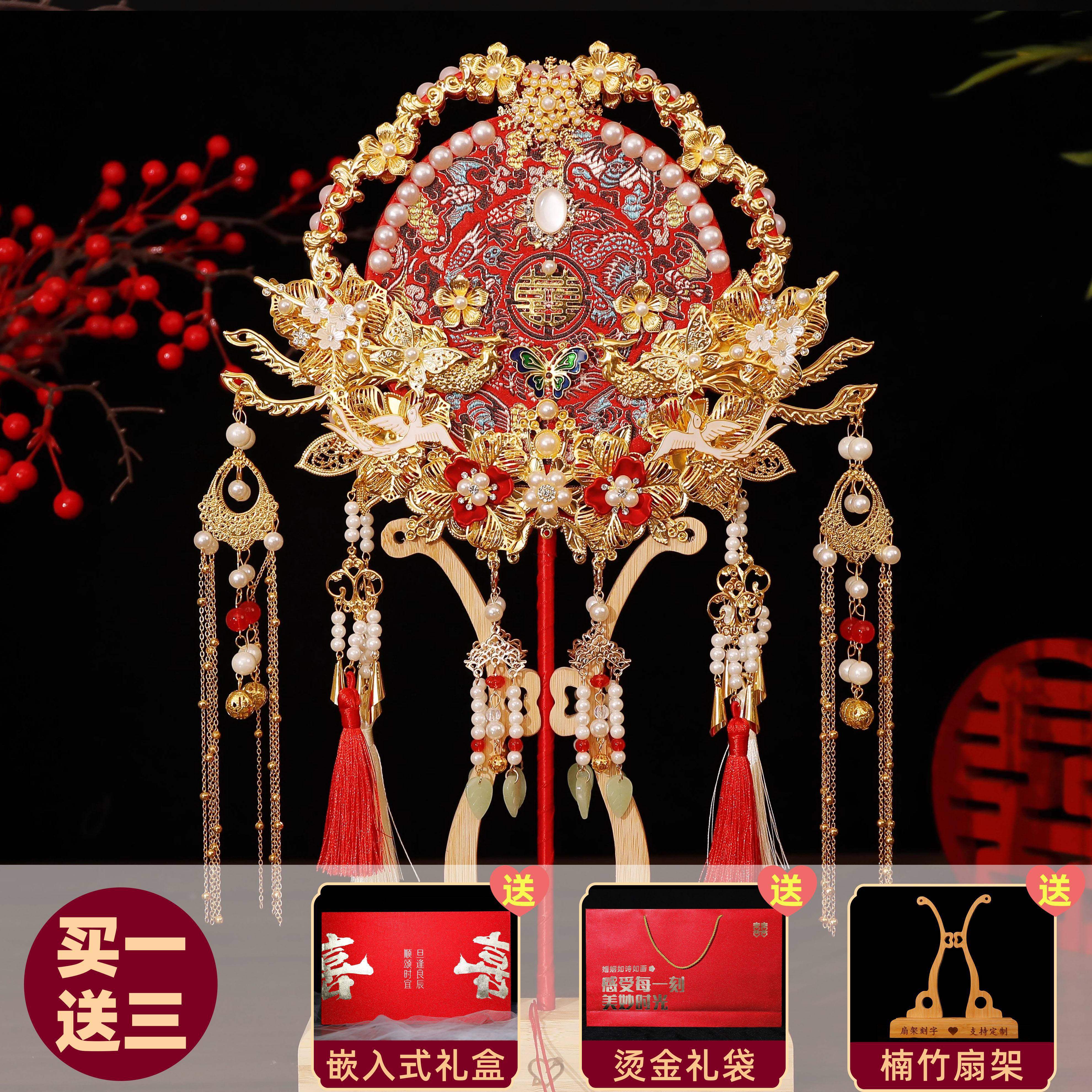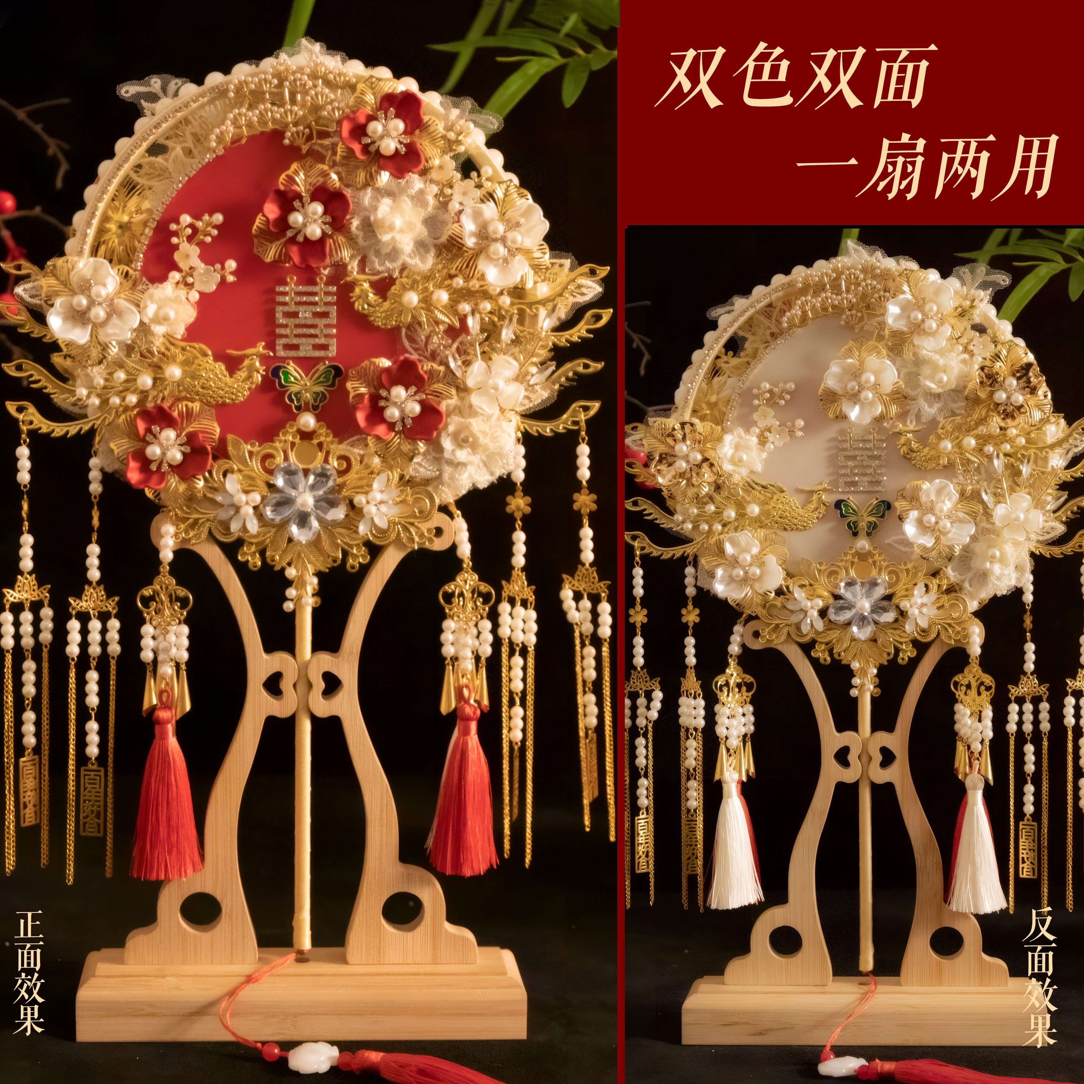 团扇新娘结婚材料包diy秀禾双面高级喜扇子新婚礼物成品出嫁手工