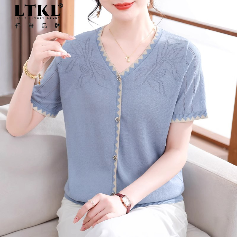 时尚 冰丝上衣中老年女装 短袖 2025新款 阔太太衣服 T恤小衫 妈妈夏装