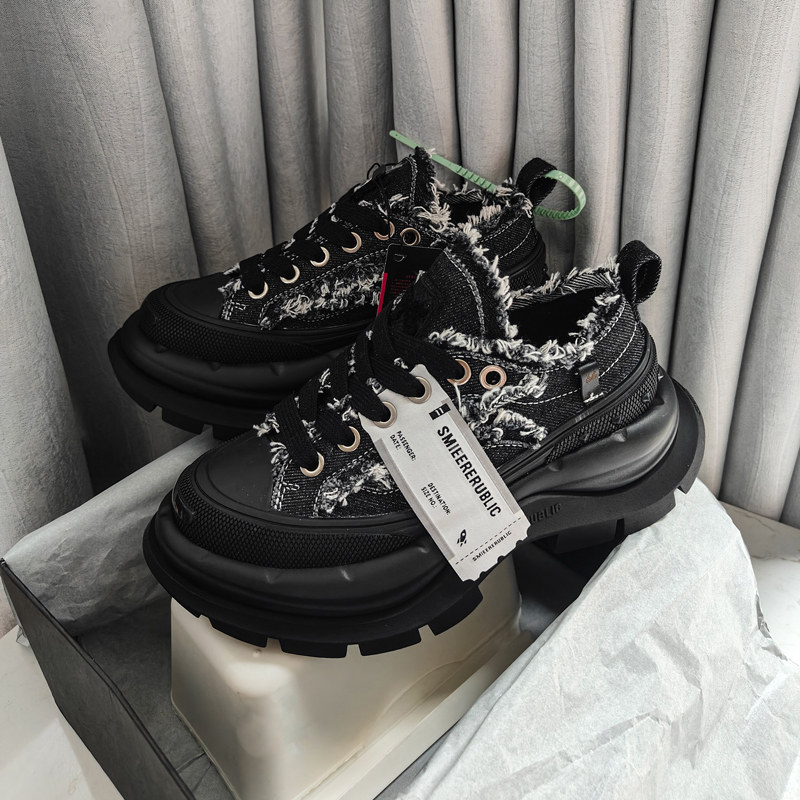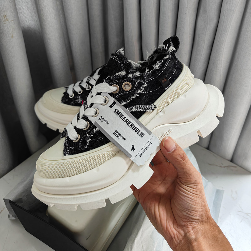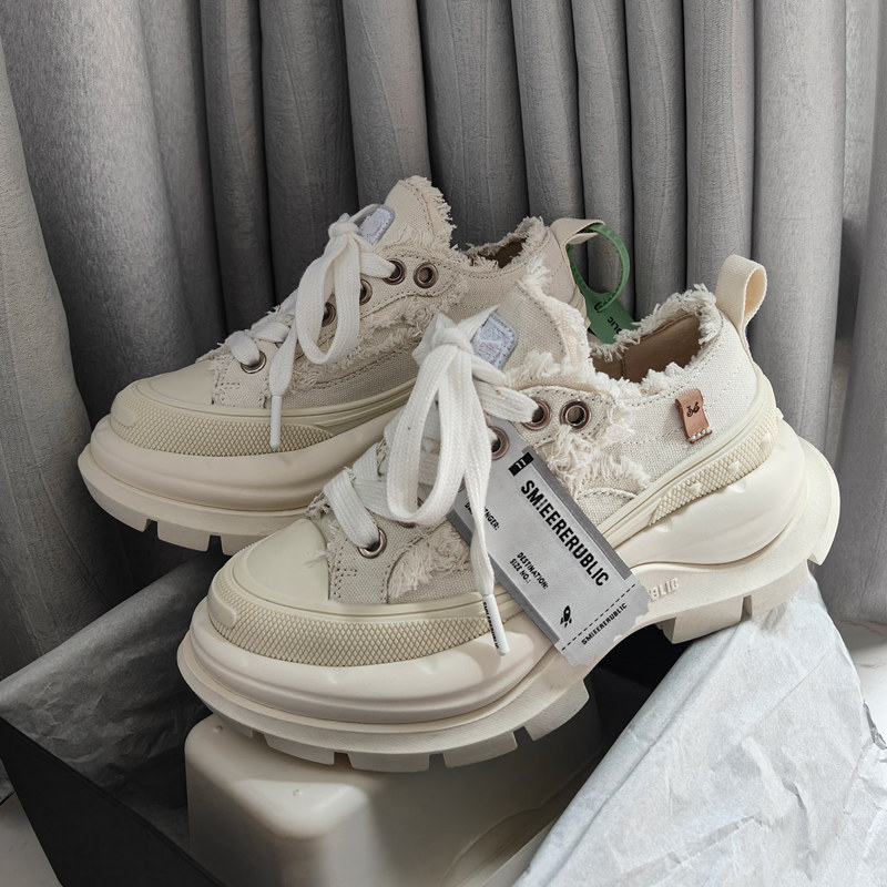 开口笑帆布鞋 小个子增高厚底休闲鞋 檀健次同款 老爹鞋 笑脸情侣款