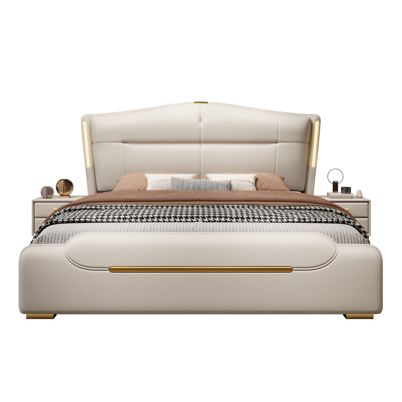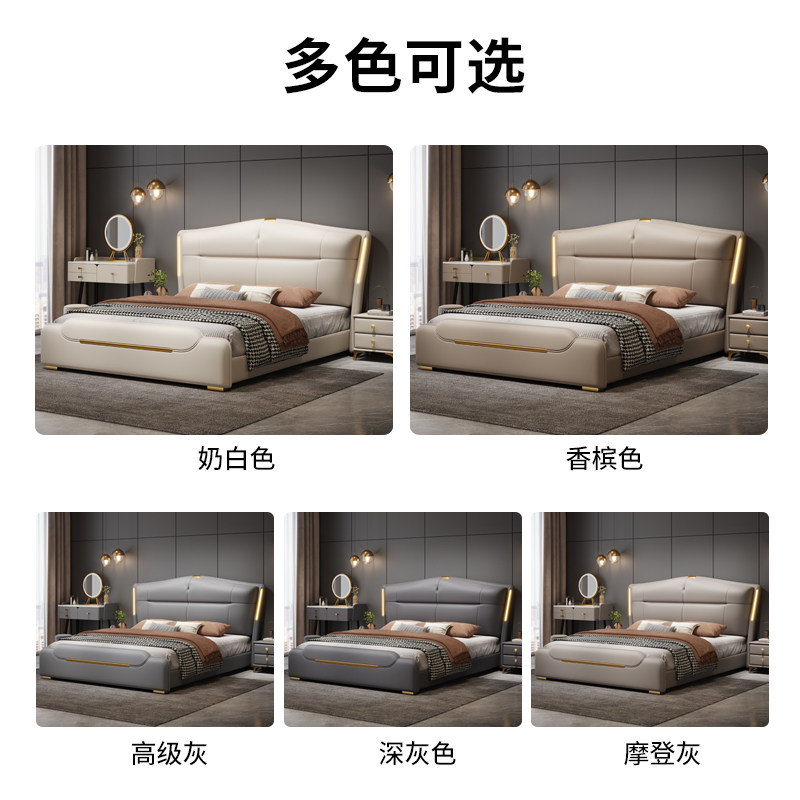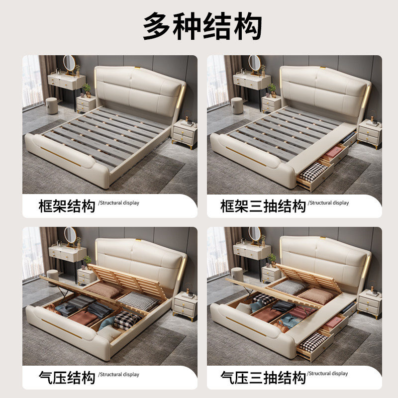 意式 真皮床主卧2米2.2米双人带储物软包皮床现代简约卧室1米8婚床