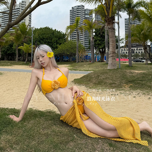 「海岛日记」比基尼高级ins风性感分体纯欲罩衫 温泉沙滩度假泳衣