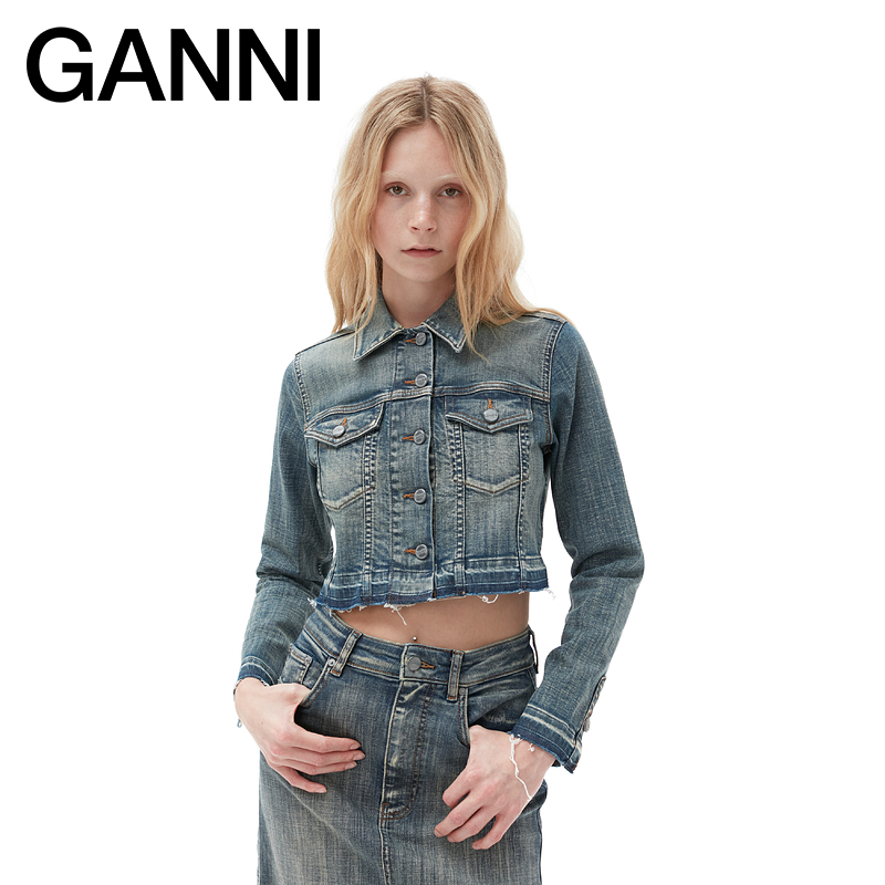 复古做旧水洗牛仔夹克外套 GANNI女装 J1257091 甄选折扣