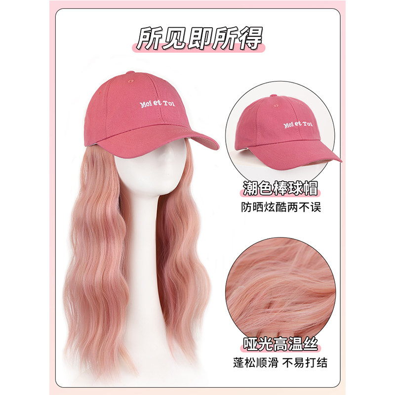帽子假发一体女长发网红潮色棒球帽假发轻薄百搭可拆卸假发全头套