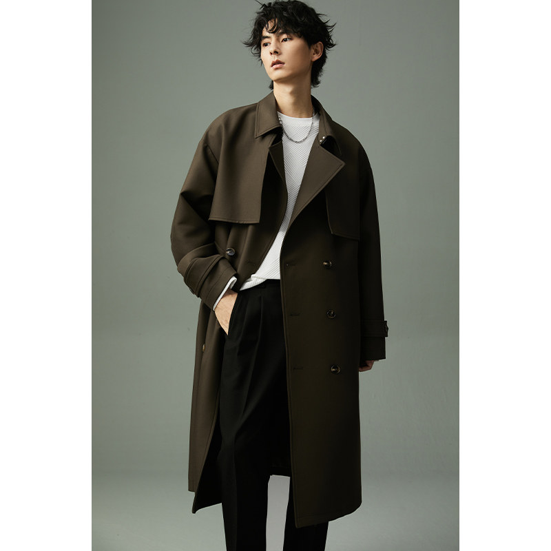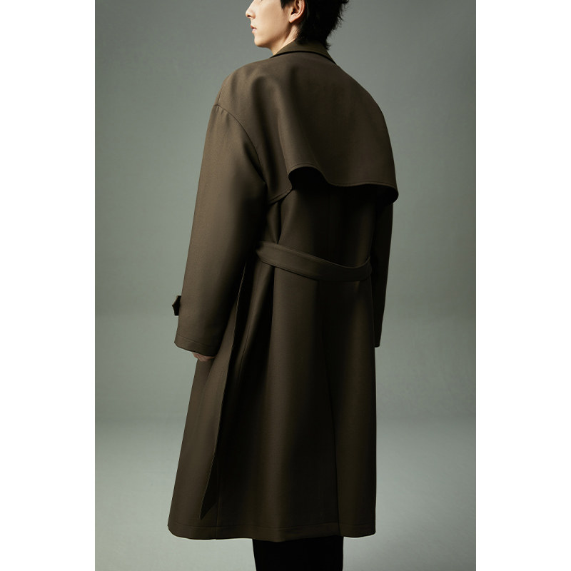 休闲外套韩版 春秋季 潮流痞帅气宽松披风男 风衣中长款 高端廓形男士