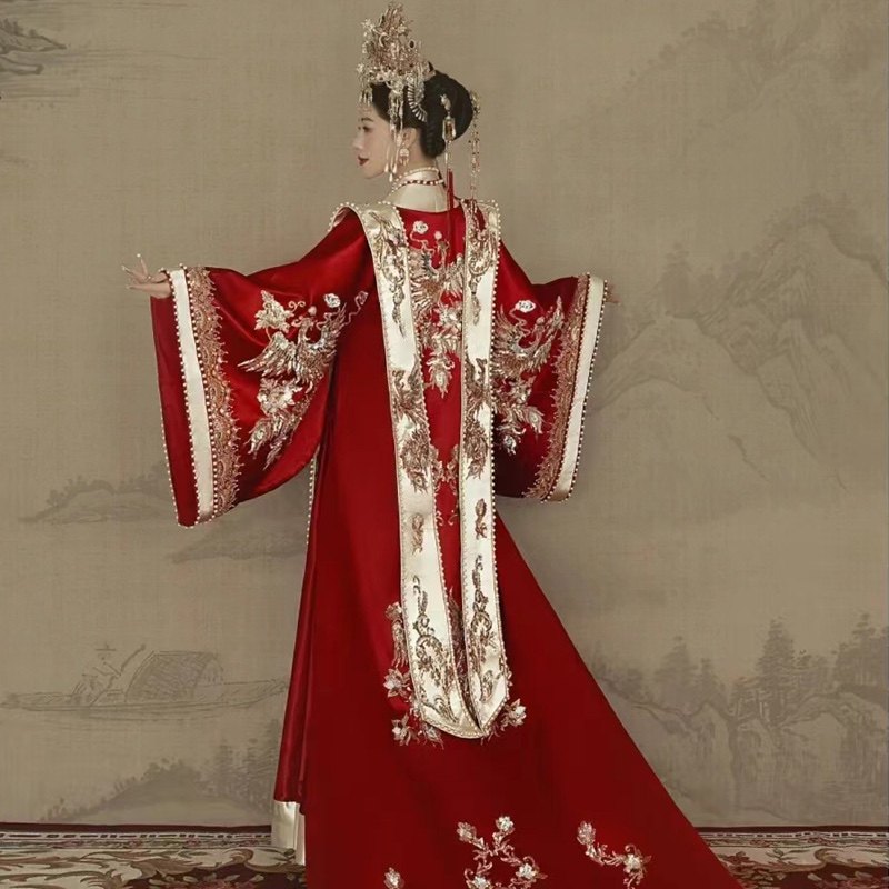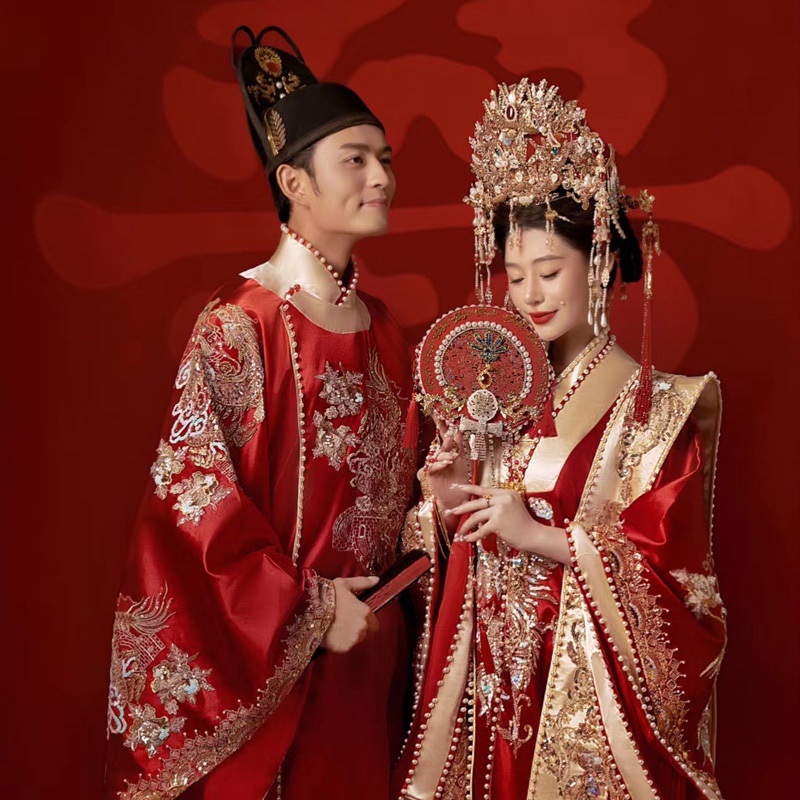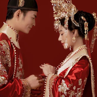 出租宋制汉服婚服凤冠霞帔男女套装 新娘定制租赁 结婚租赁嫁衣中式