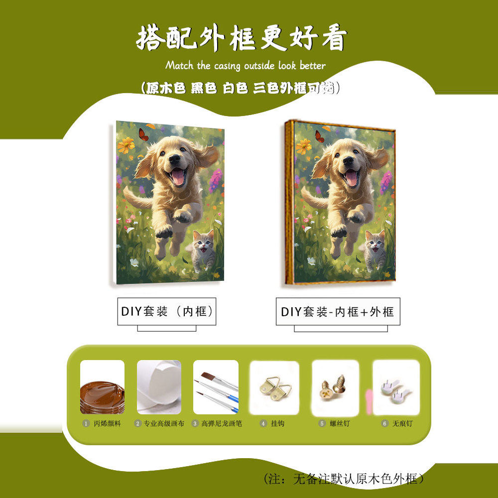 治愈可爱比熊犬数字油画DIY手工绘填充涂色丙烯油彩解压装 饰挂画
