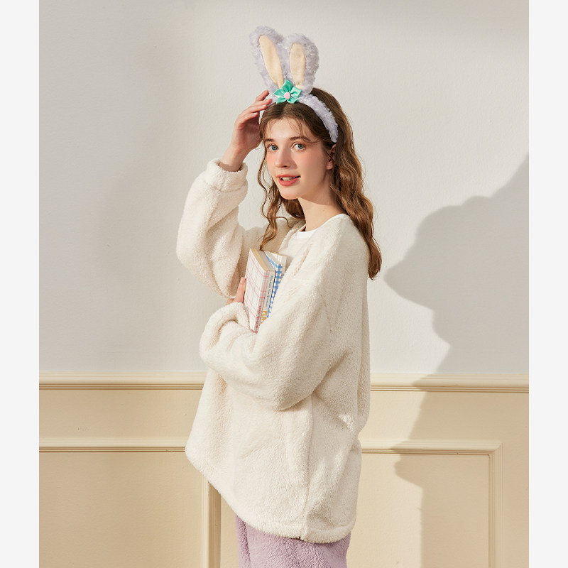 女冬季 Pinksea珊瑚绒睡衣秋冬女款 加厚连帽小丑兔卡通家居服套装