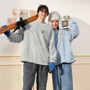 套装 都市丽人法兰绒情侣睡衣冬季 加绒加厚保暖男女家居服秋冬新款