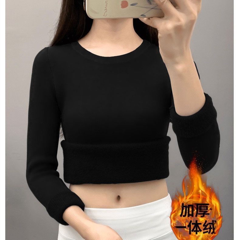 秋冬圆领羊绒衫 上衣 女套头一体绒加绒加厚羊毛线衣内搭保暖打底衫