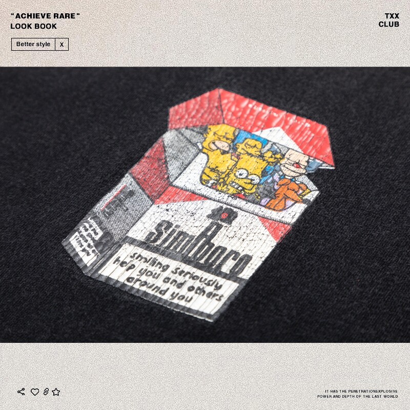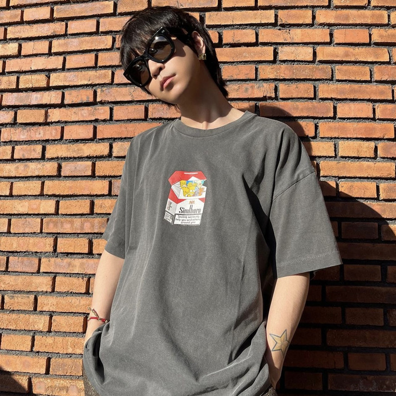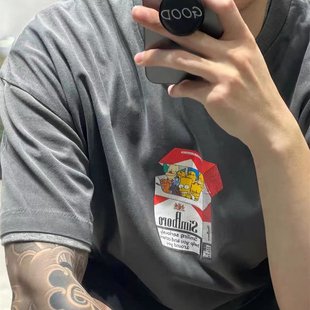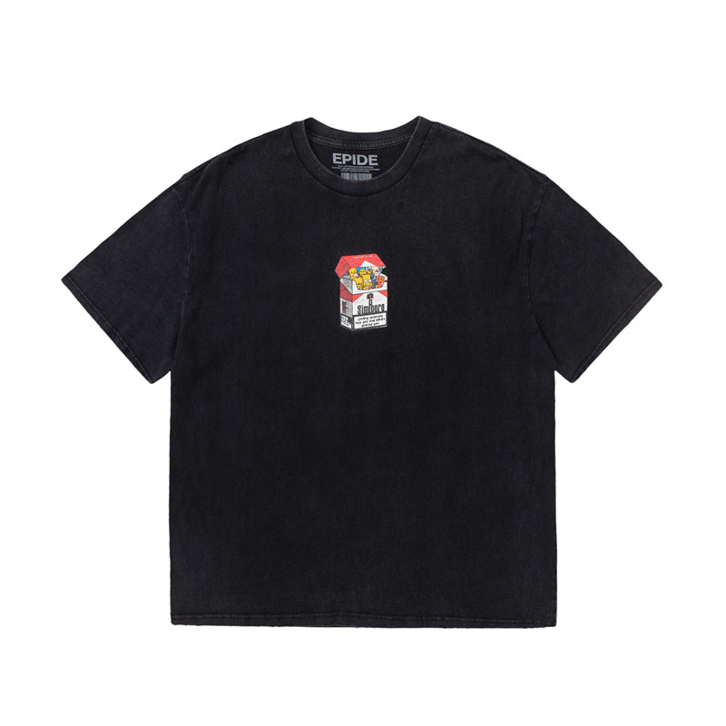 EPIDE洗水做旧万宝路辛普森烟盒印花Vintage高街男女宽松短袖 T恤