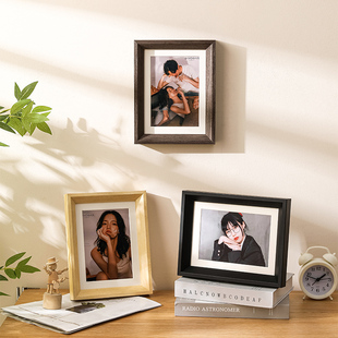 复古实木相框简约现代怀旧摆台6寸8k12寸画框装 裱小摆件定制美式
