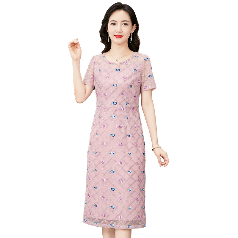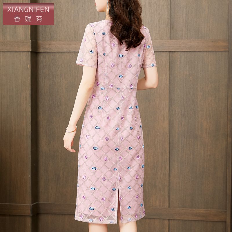 香妮芬高端绣品中年妈妈连衣裙夏装 粉色淑女温柔风漂亮裙 2025新款