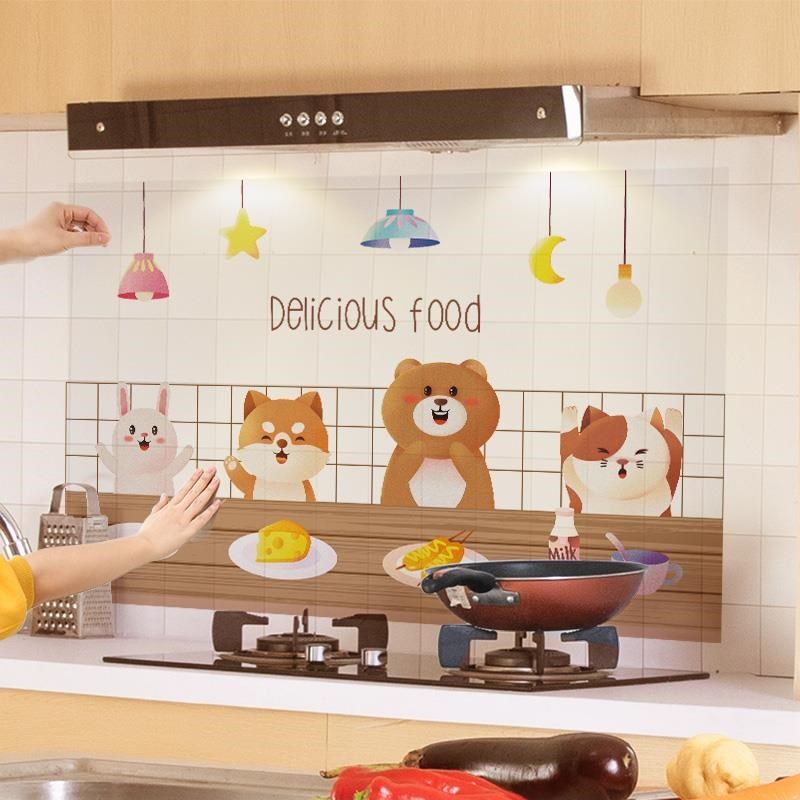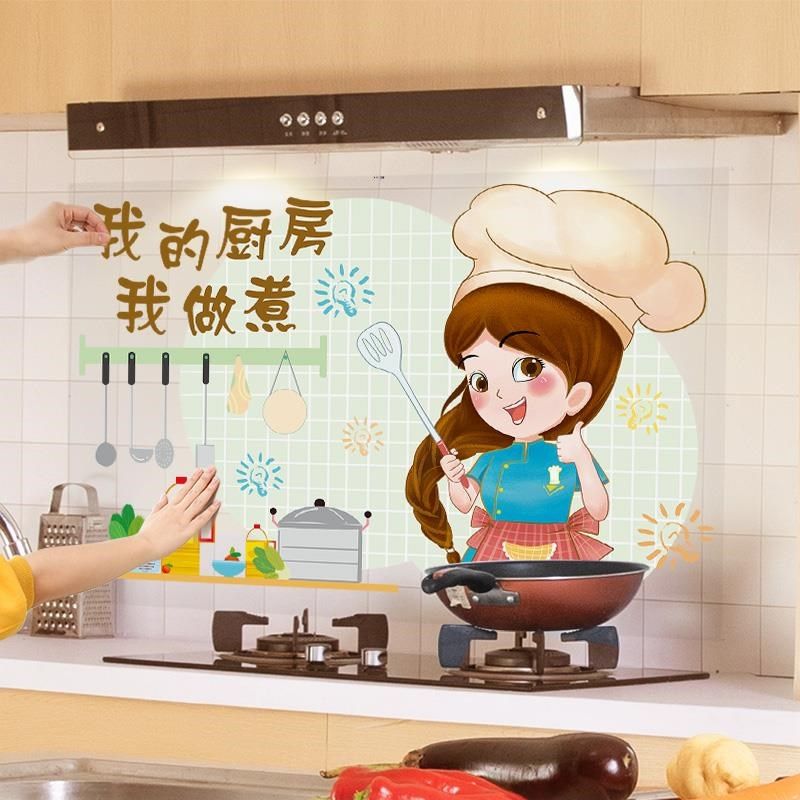 卡通厨房防油贴纸墙贴画油烟机灶台用防水防油烟瓷砖墙面墙纸自粘