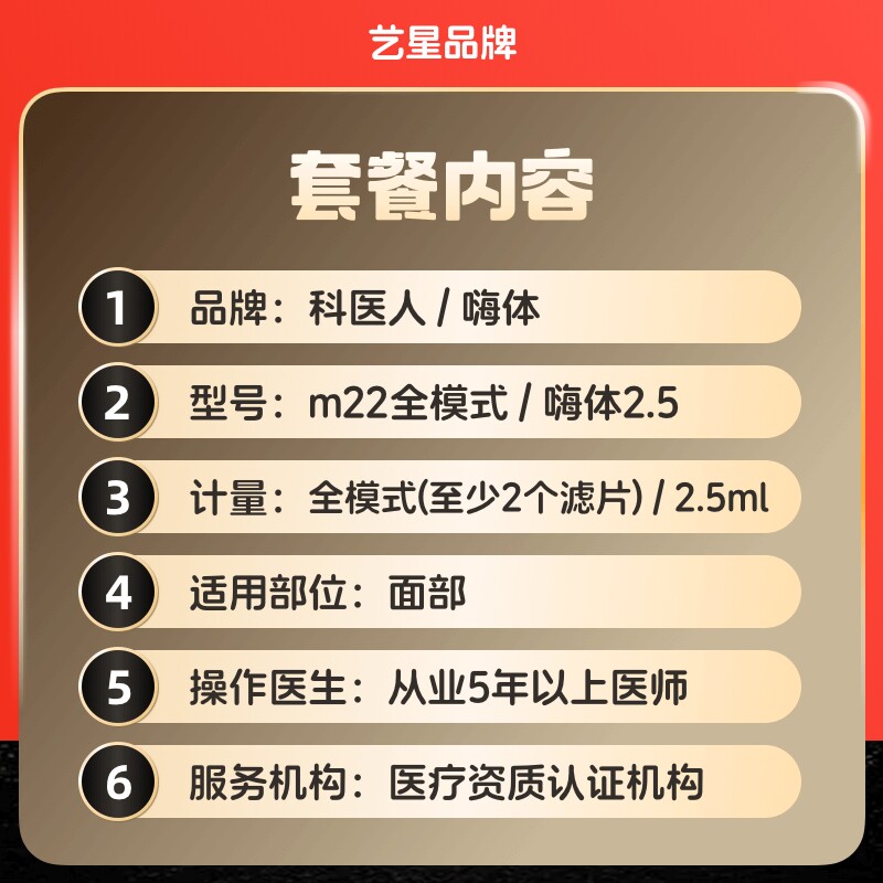 嗨体水光针2.5ml美白保湿 科医人黄金超光子嫩肤m22全模式