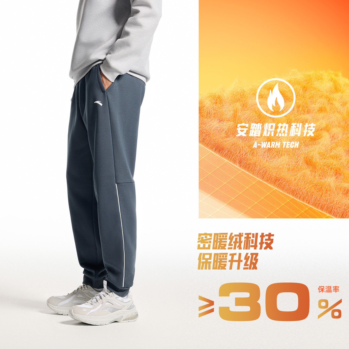 男士 子训练跑步裤 2025冬季 加绒保暖束脚卫裤 新款 安踏针织运动长裤