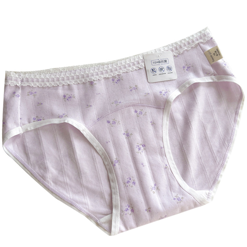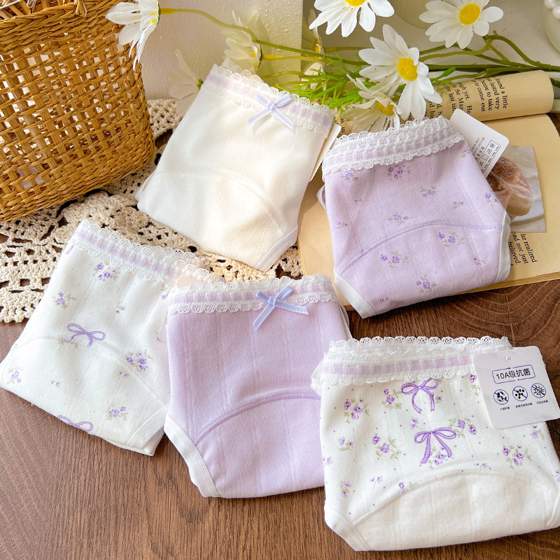 女纯棉抗菌裆碎花甜美日系少女紫色中腰新款 薰衣草 内裤
