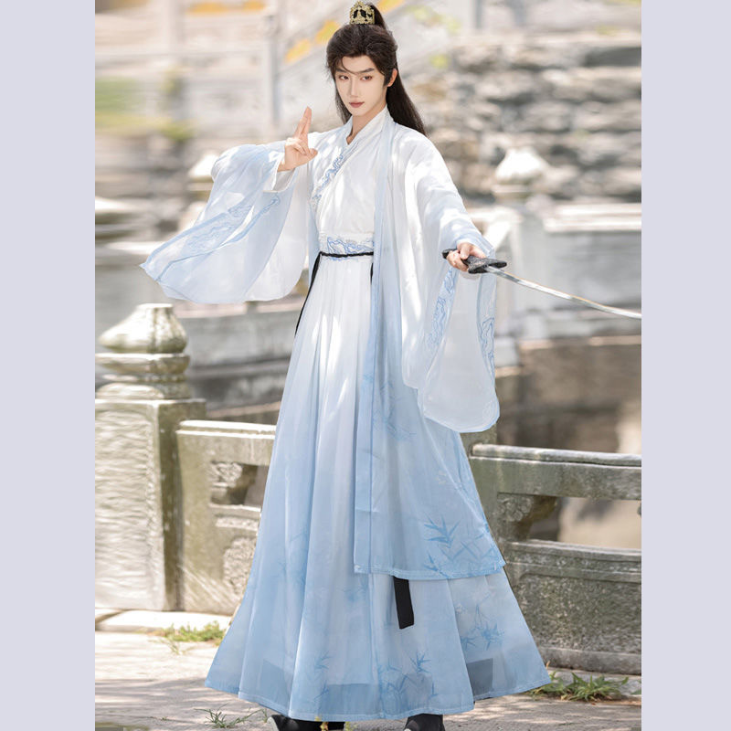 斜襟长衫 汉洋折衷套装 马面裙显瘦清新紫色蓝色 春水如兰 醉时阁