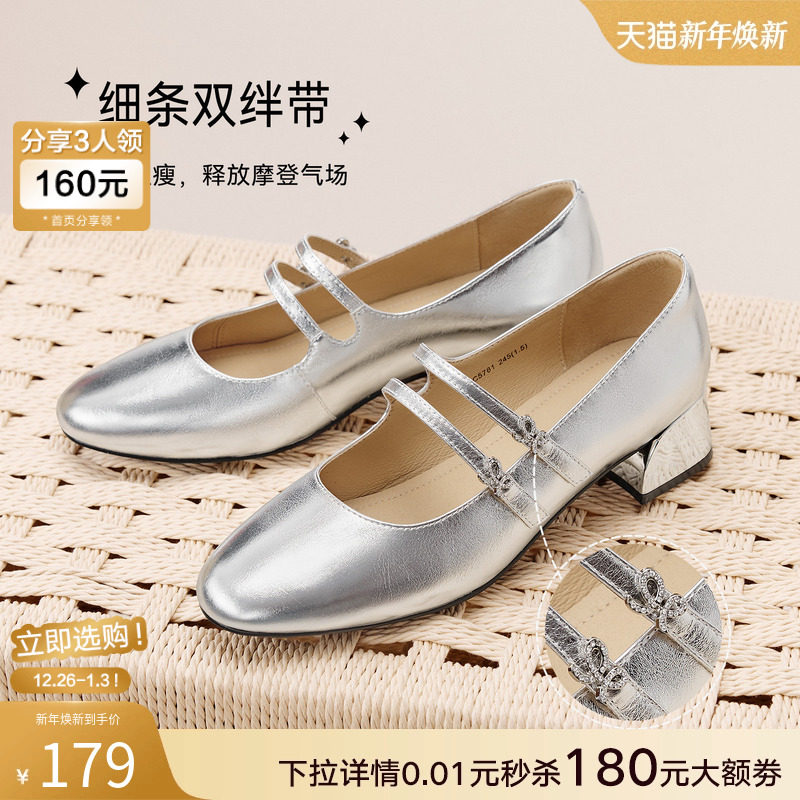 加绒保暖女浅口单鞋 百思图2025冬季 玛丽珍鞋 毛毛鞋 F1812DQ5 新款