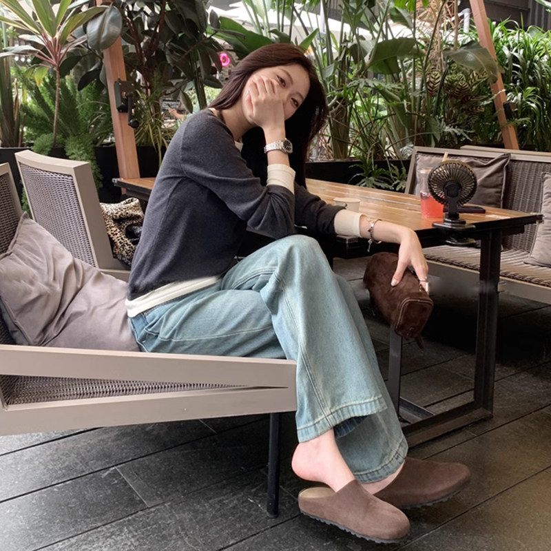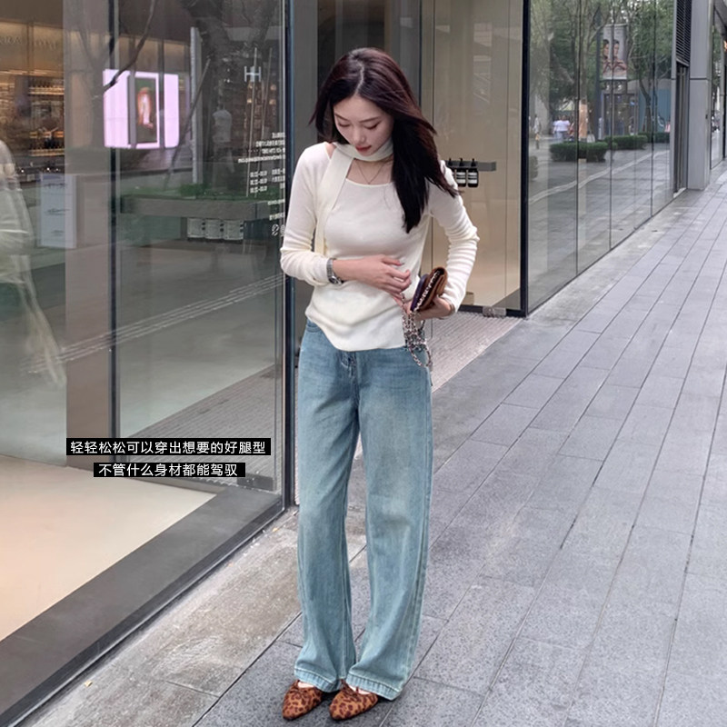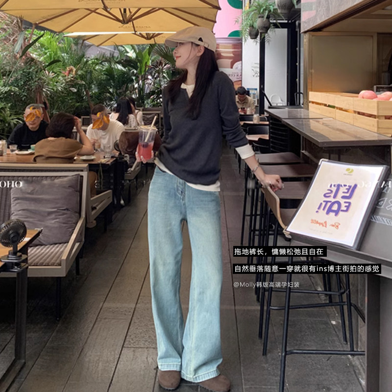 2025春季 拖地裤 新款 宽松百搭休闲直筒窄版 子 时尚 孕妇浅蓝色牛仔裤