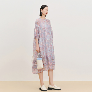 桑蚕丝莫奈印花A摆娃娃裙连衣裙休闲长裙女 AUM噢姆夏季 FaFa裙