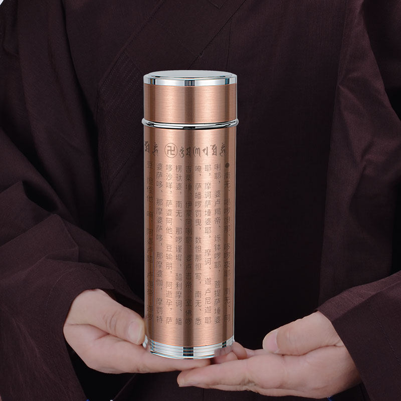 纯银内胆真空保温杯经文大悲咒心经999银杯子足银莲花杯定制礼品