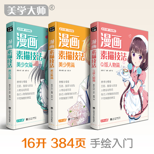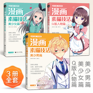 漫画素描技法 Q版 3本 美少男 人物动漫新手初自学零基础教程入门手绘临摹画册书籍古风男生教材小学生 美少女 美学大师